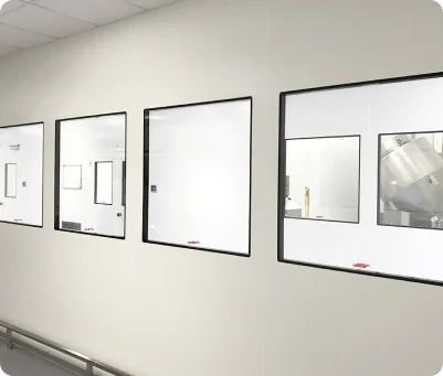 Стеклянные панели (перегородки)/смотровые окна, как и стеновые панели являются одним из основных элементов для устройства чистых помещений и рабочих мест.